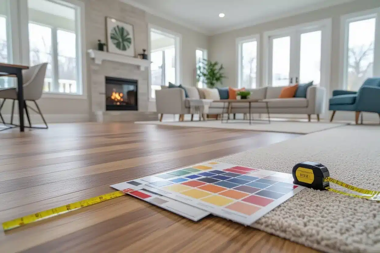 Start by measuring each room and prioritizing areas based on traffic and budget, then narrow materials to 2–3 contenders and order samples to test in your lighting; get written quotes from at least two installers, schedule a free in-home consult, allow 1–2 weeks for product lead time on common items, and clear rooms the day before installation to keep the project on track.